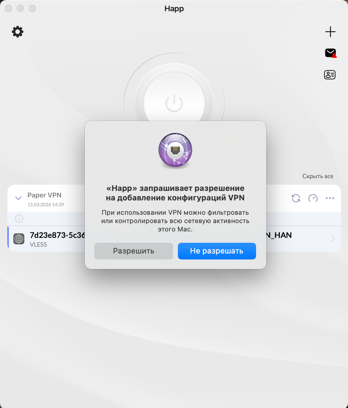 Установи Happ. Приложение есть как в российском, так и в зарубежных App Store.